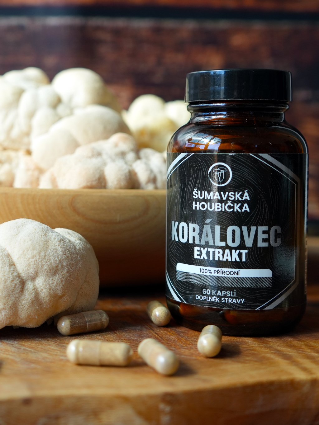 Rostlinné kapsle plněné silným extraktem z korálovce.