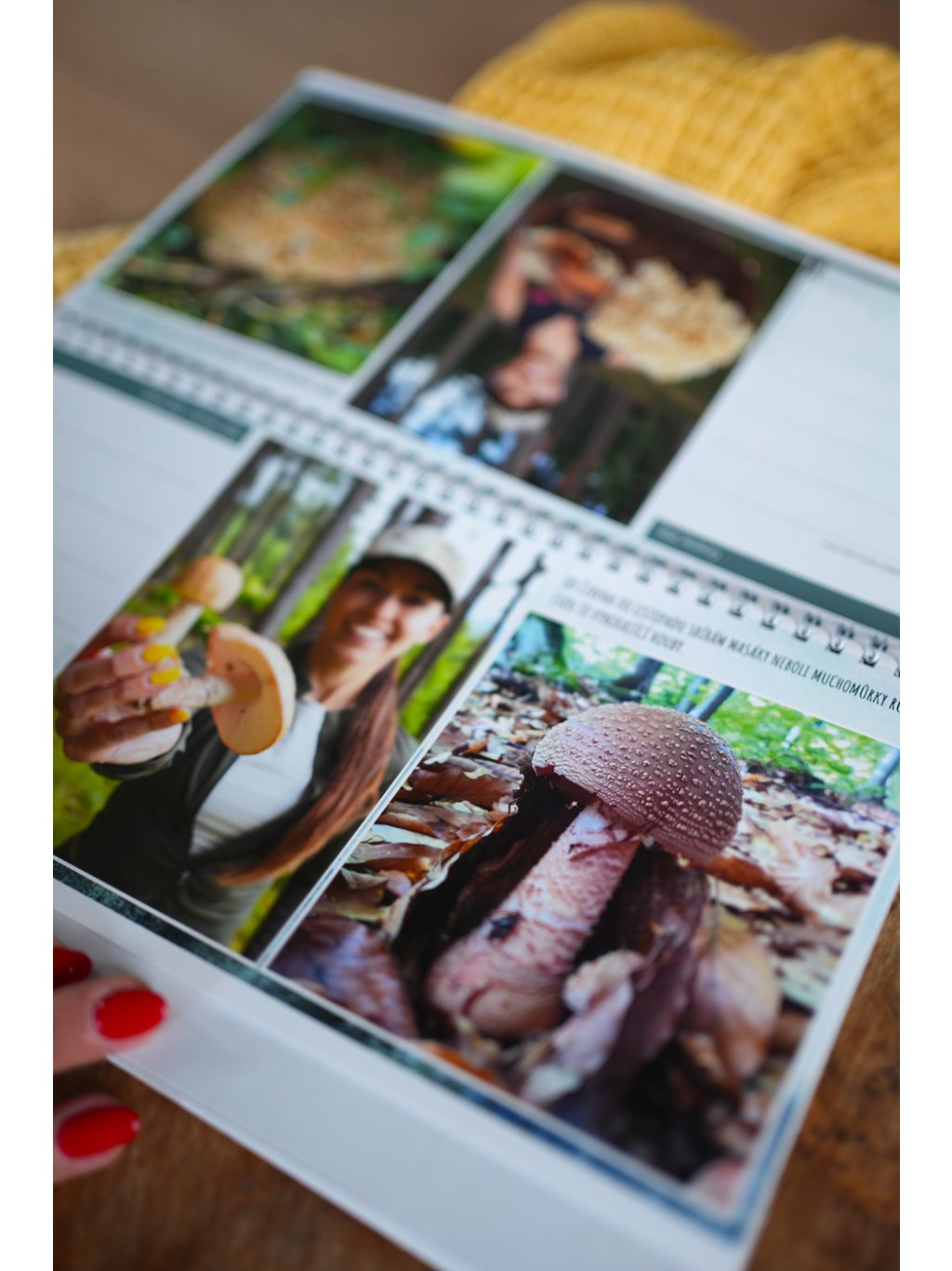 Kalendář je doplněn o autentické fotografie z lesů Šumavy – snímky hub, mechových paloučků, lesních košíků i samotné Šumavské houbičky při sběru. Každá stránka má svou atmosféru a nese vůni lesa. Kalendář tak nejen informuje, ale také motivuje: připomíná, jak léčivé, chutné a uklidňující může být obyčejná procházka do lesa. U mnoha druhů najdete i praktické tipy, jak si vybrané houby vypěstovat doma – ať už na zahradě, nebo v bytě.
